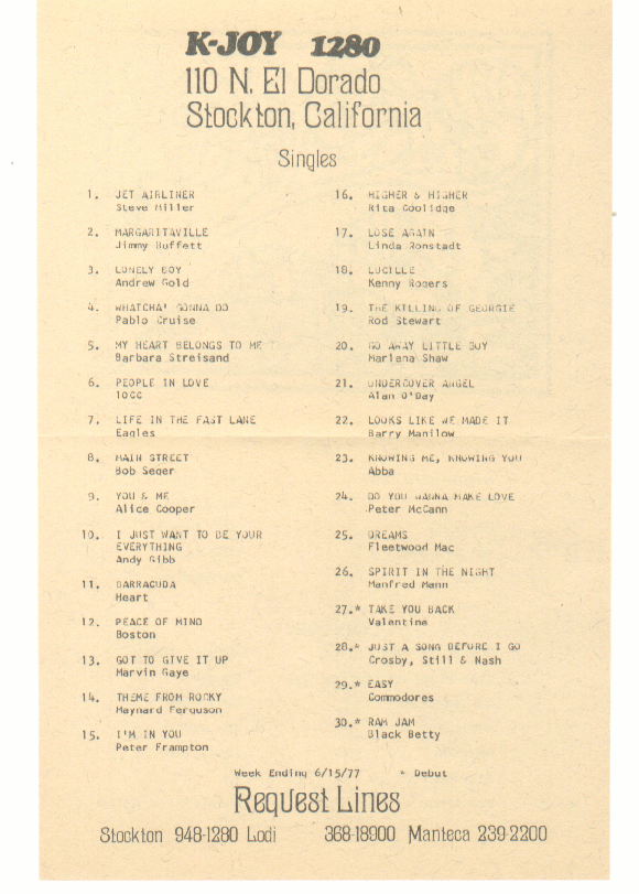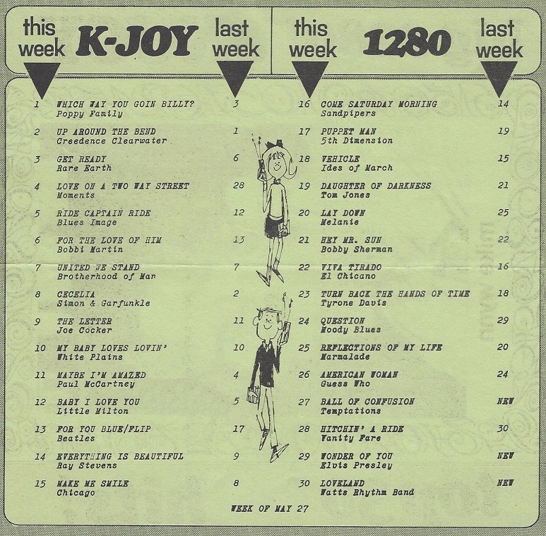 Terry Nelson - 1969 from outside the KJOY window. 1970 - Page 1 1970 - Page 2 1970 Survey From 1970
